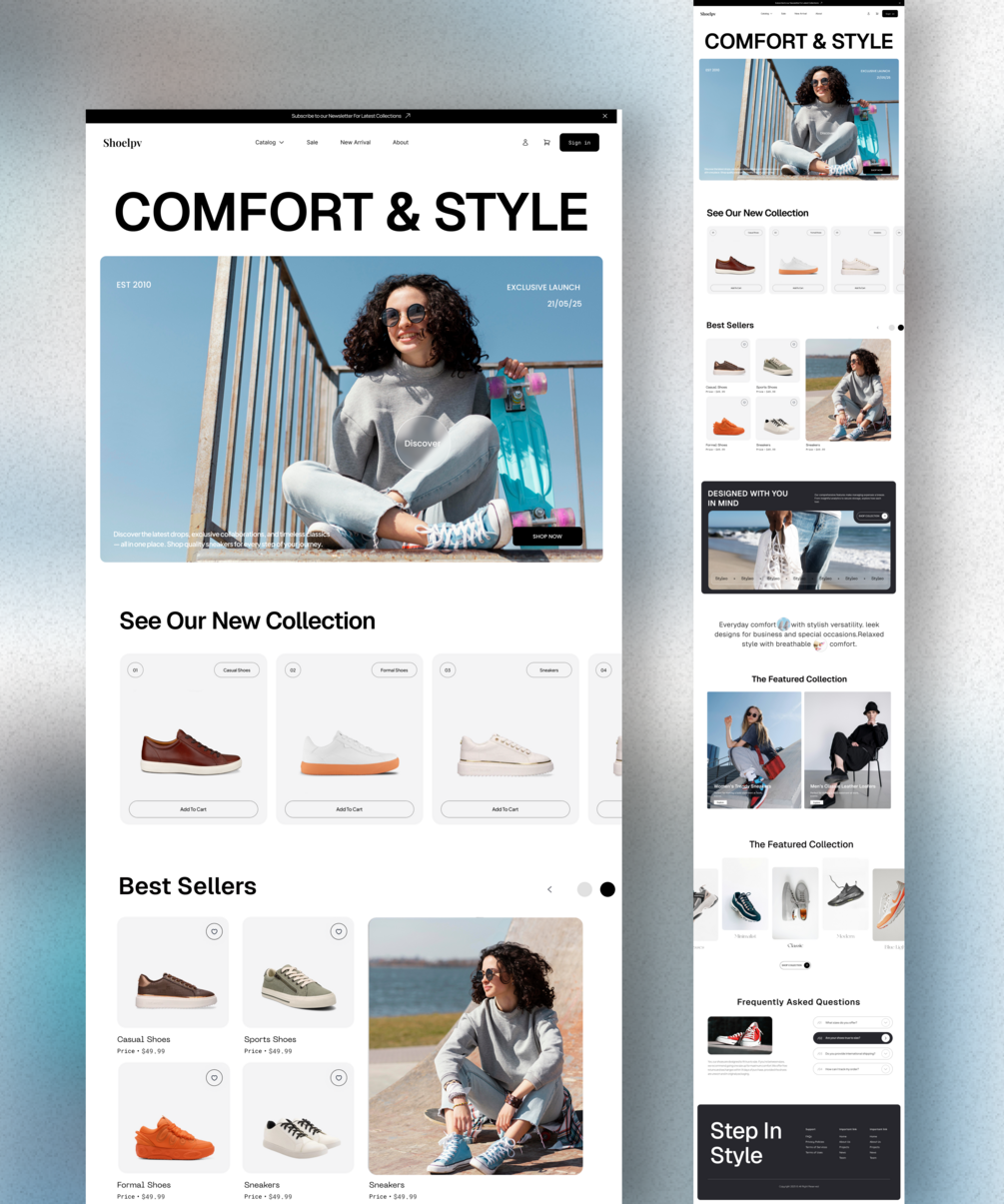 This template works great for any shoes, ecommerce, or any other shop looking to establish their brand online. Whether you are just starting your ecommerce store or looking to refresh your online presence, this template gives you a solid foundation.